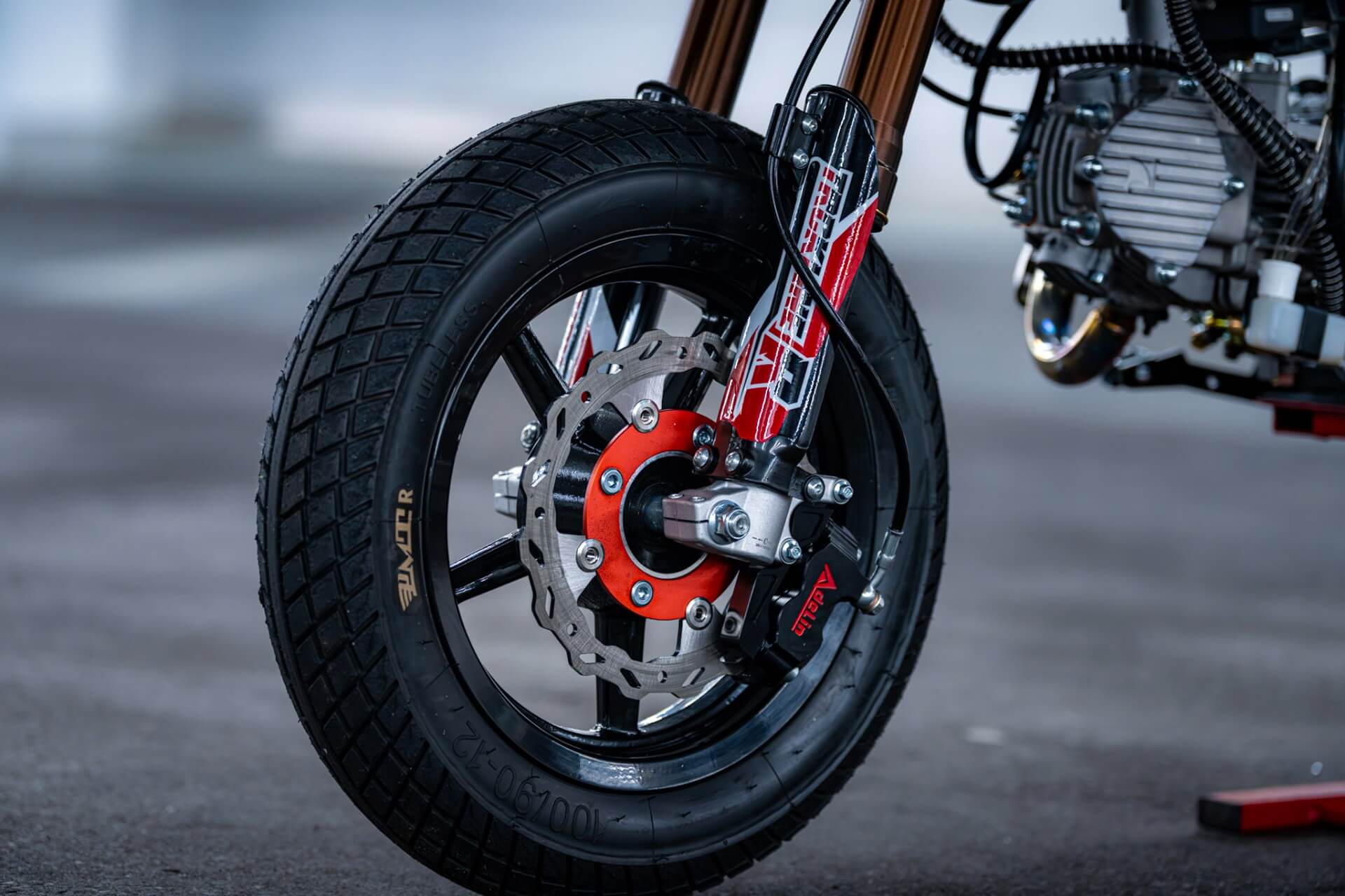 - Bremszange: Adelin ADL-01 (4 Kolbenbremssattel mit 220mm Wavebremsscheibe vorne)